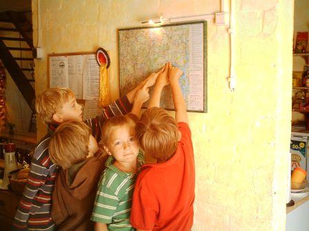 Gekocht wird bei uns biologisch-vegetarisch. Es gibt vier Mahlzeiten in Buffet-Form die wir im Reiterzimmer zusammen mit den Kindern einnehmen. Getränke stehen jederzeit frei zur Verfügung.